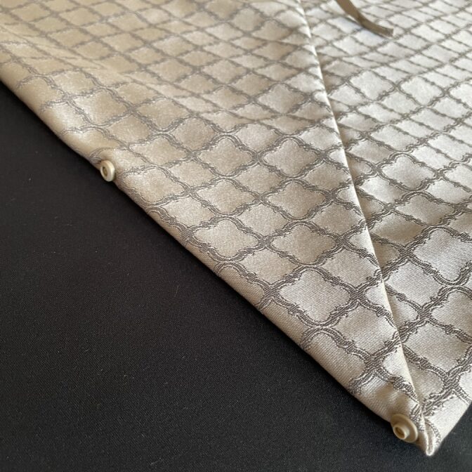 光沢のある生地ですので、お手持ちのモニターや見方や人によっては違うお色に見える事もあります。神経質な方はご遠慮くださいませ。