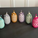 ラベンダー、セージ、フューシャ、マスタード、グレー、ティファニーブルーで編み方もそれぞれ。